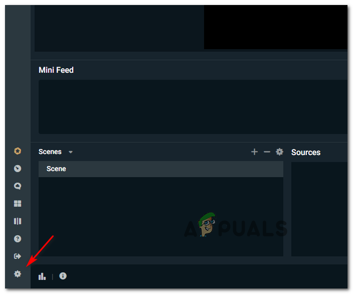 Fetching the IPV4 address - Now that you have successfully found out your IP address, open the StreamLabs application, and click on the Settings icon (bottom-left section of the screen).