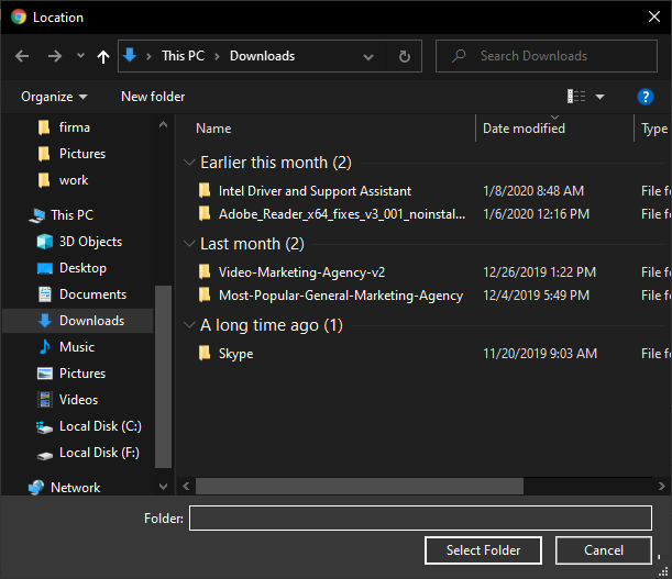 Changing the Default download location - From the Location window, choose a location that is valid and it’s not subject to become unavailable in the future and click on Select Folder.
