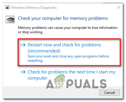 - Once you’re finally inside the Windows Memory Diagnostic issue, click on Restart Now and check for problems.