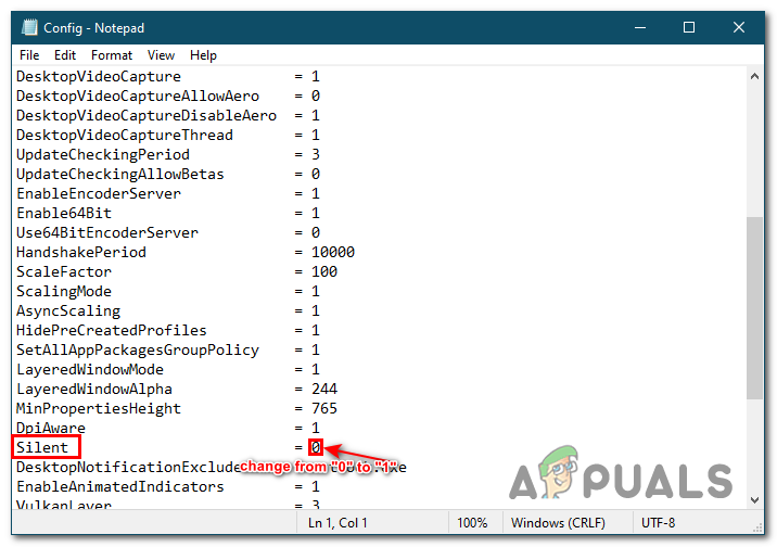 - From here find Silent and change the value from 0 to 1