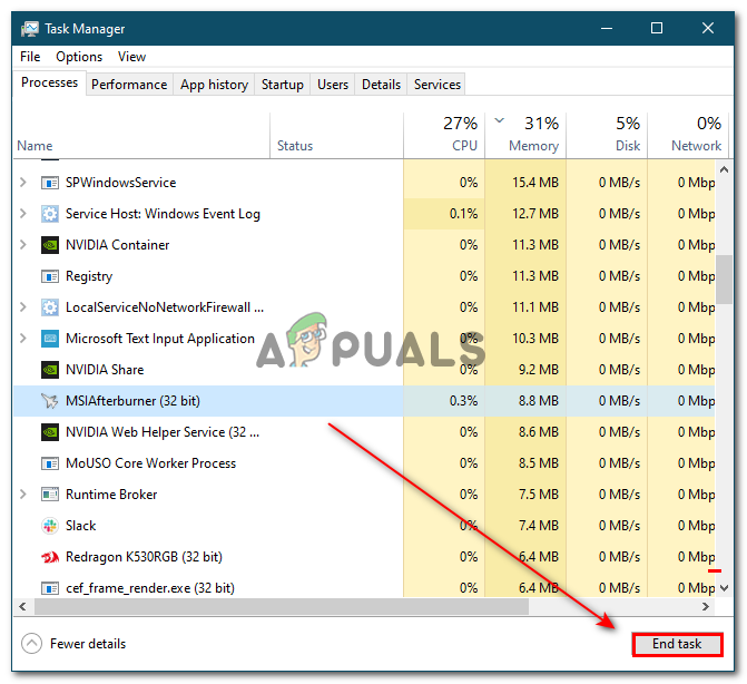 - Now make sure MSI Afterburner is closed completely from the task manager as we told you above.