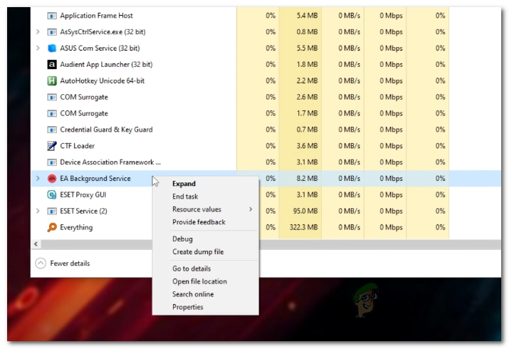 Opening up the Task Manager - When the Task Manager window is open, on the Processes tab, look for any Origin or EA processes. This includes processes like EA Background Service and Origin Background Service.
