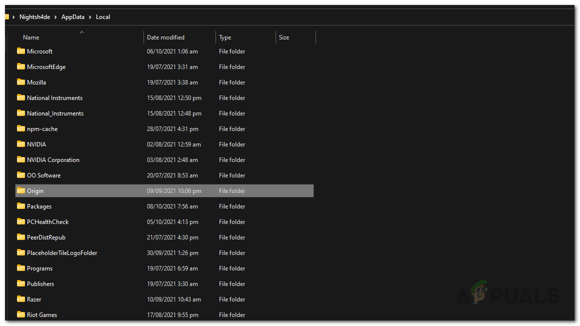 Opening up the Origin Folder - Inside the Origin folder, delete all the files and folders present with the exception of LocalContent. Do not delete this folder.