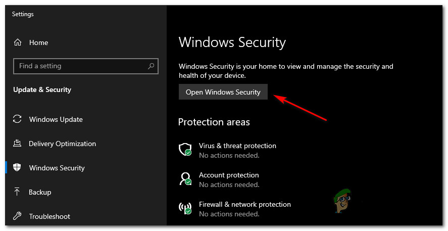Accessing the Windows Defender tab - Once you’re inside the Windows Security tab, move over to the right-hand section of the screen and click on Open Windows Security.