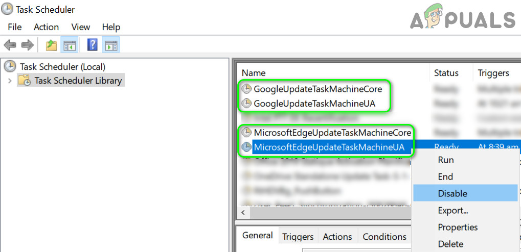 Open the Task Scheduler - Now select the Task Scheduler Library and in the right pane of the window, right-click on MicrosoftEdgeupdatetaskmachineUA and select Disable.