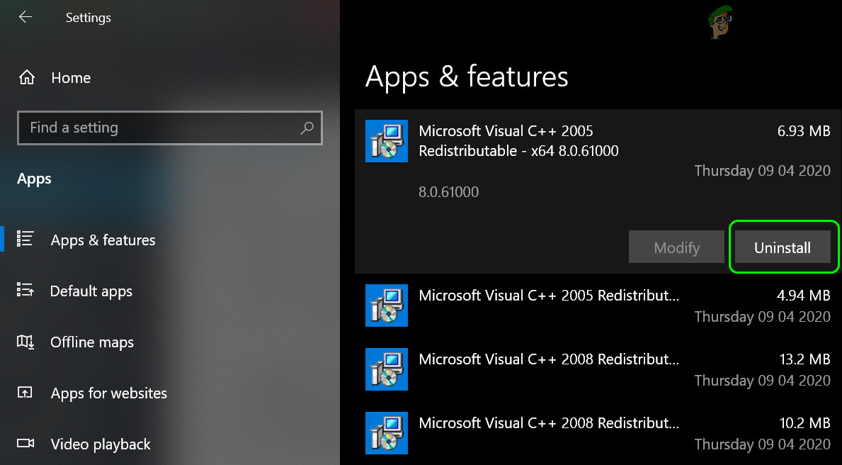 Uninstall Microsoft Visual C ++ - Then wait for the completion of uninstallation of the Visual C ++ and repeat the same to remove all versions of the Visual C++.