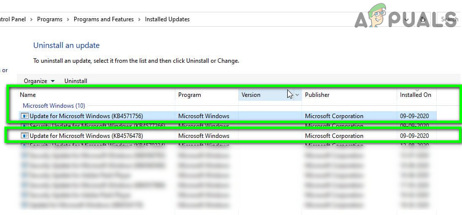 Open Uninstall Updates - Now click on Uninstall and wait for the removal of the update (repeat the same for all the problematic updates).
