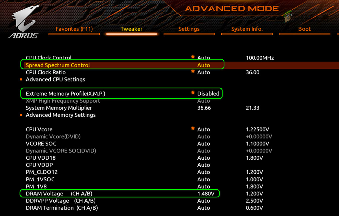 Enable XMP, Disable Speed Spectrum and Set the Ram Voltage to 1.4