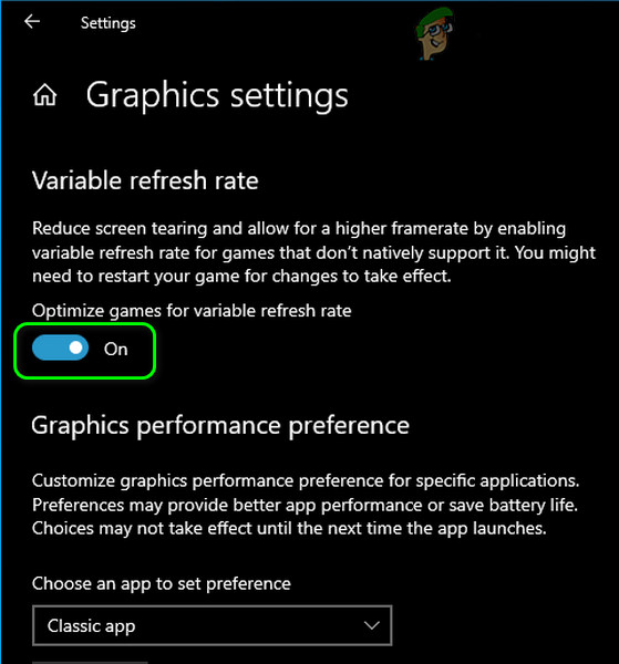 Variable Refresh Rate (VRR) is used to change the refresh rate of a display unit (where supported) to prevent screen tearing during the game’s play in full-screen. But this feature may hinder the operation of the display modules and thus cause the error under discussion. In this case, disabling the Variable Refresh Rate may solve the problem. But this option may not be available to all the users.