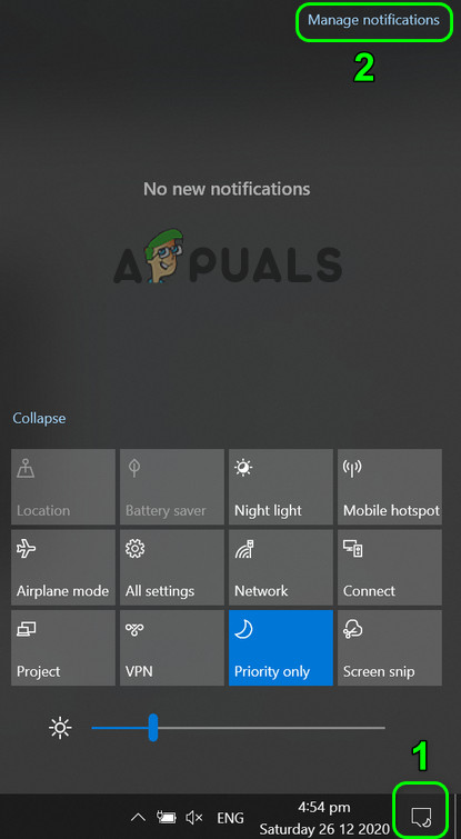 Disable Focus Assist - If the issue is still there, then click on the Action Center icon and select Manage Notifications (on the top of the Action Center window).