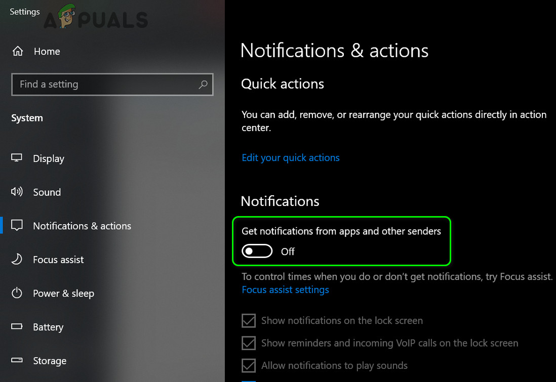 Disable Get Notifications from Apps and Other Senders - Now reboot your PC and check if it is clear of the Event 65 error.