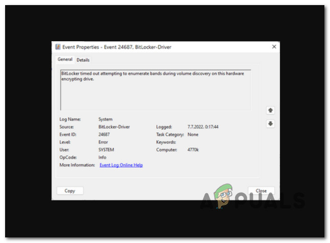 Some Windows 10 and Windows 11 users are constantly seeing new instances of the Event ID Error 24687 when opening Event Viewer. The error message explaining the issue is ‘BitLocker timed out attempting to enumerate bands during volume discovery on this hardware encrypting drive‘.