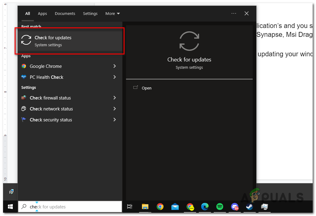- Search for “Check for updates”.
