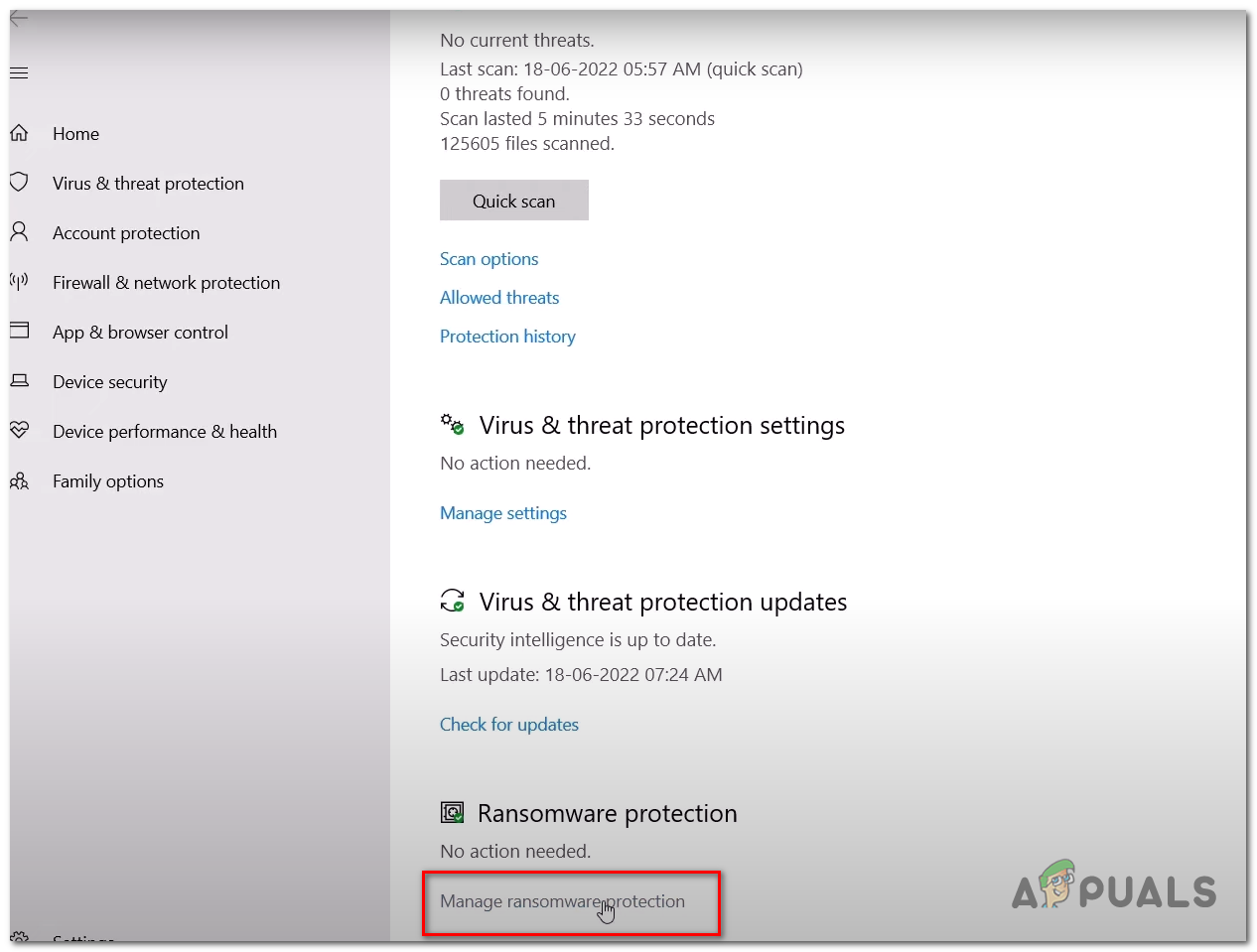 - Scroll Down, Click on Ransomware Protection.