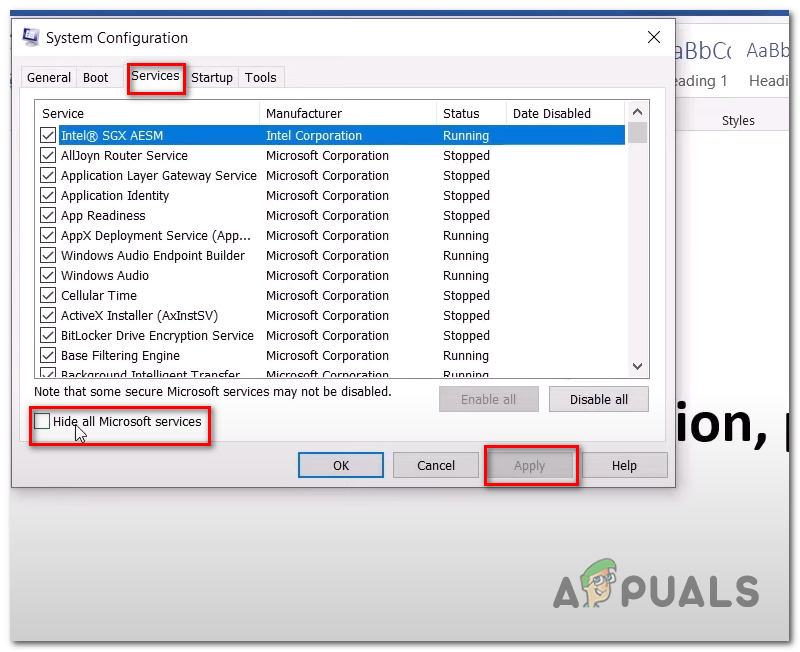 Performing a Clean boot - Click on apply.