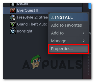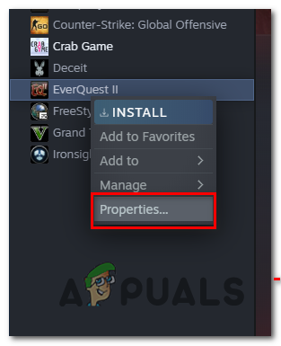 - Right-Click on the desired game in our case EverQuest 2.