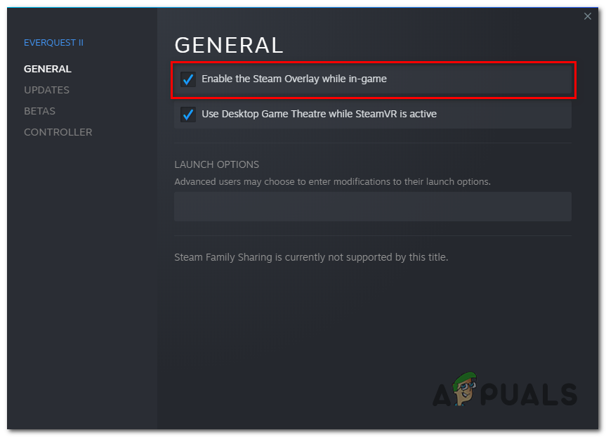 - Uncheck the “Enable The steam Overlay” if checked.