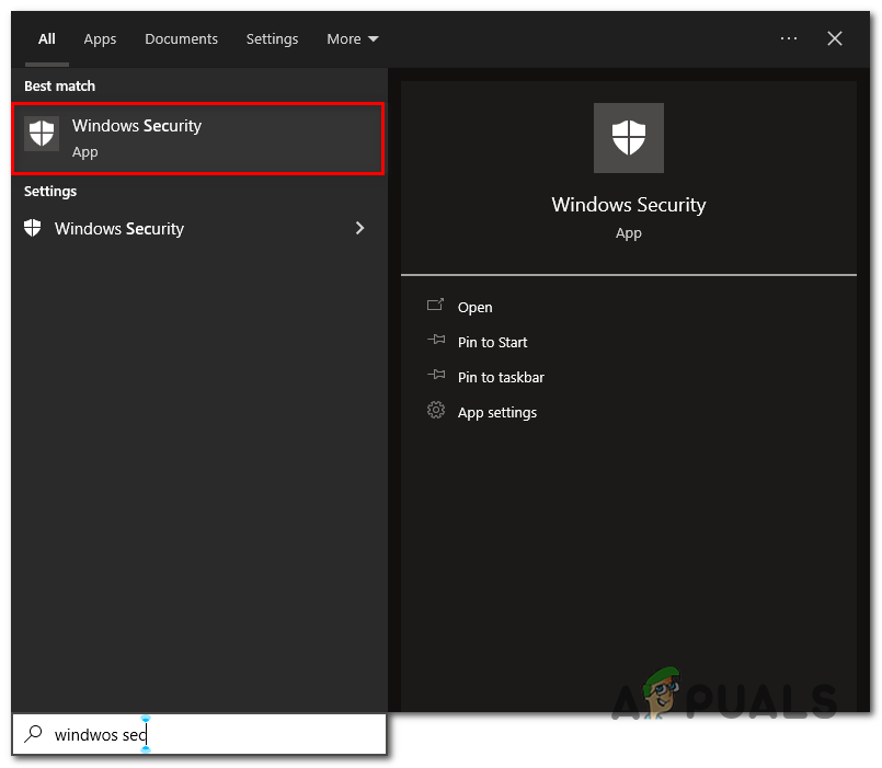 - Search “Windows Security”.