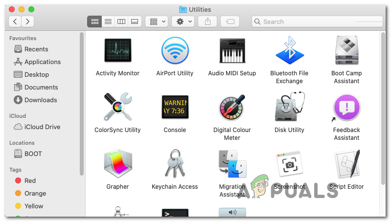 Accessing the Utilities menu - Once you’re inside the Utilities screen, click on Keychain Access from the list of available options.