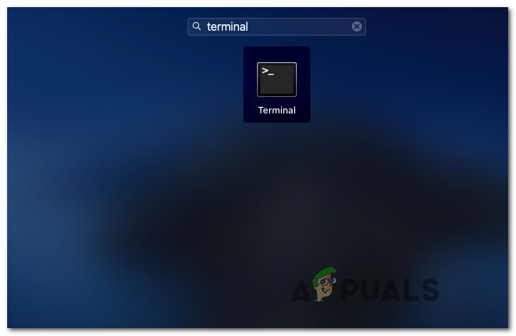 Accessing the LaunchPad utility - Once inside use the search function at the top to search for ‘Terminal’, then click on Terminal from the list of results.