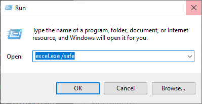 - Type the command excel.exe /safe into the run box and hit Enter.