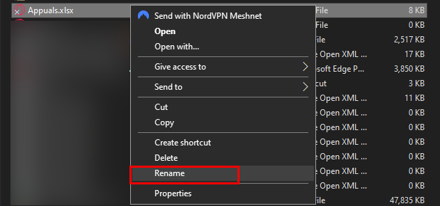 - You should now see the .xlsx, .xls, or a similar extension at the end of your Excel file.