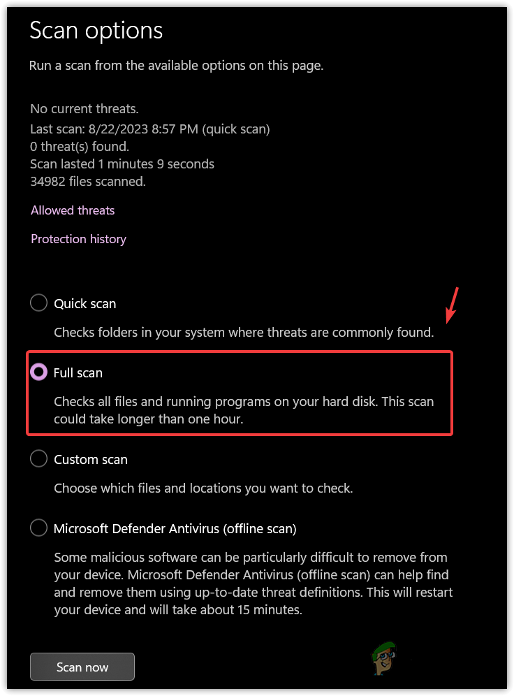 - Select the Full Scan option, and click Scan now.