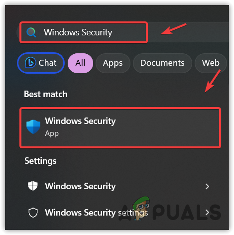 - Here, type Windows Security and hit Enter to navigate.
