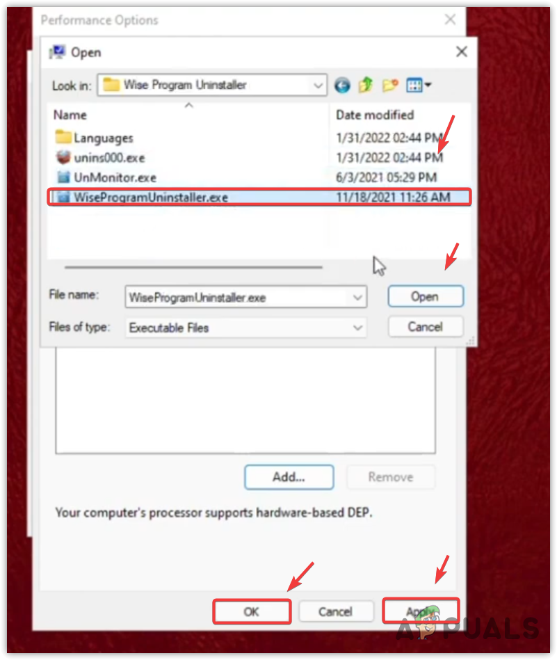 - Here, select the WiseProgrammerUninstaller.exe and click Open.