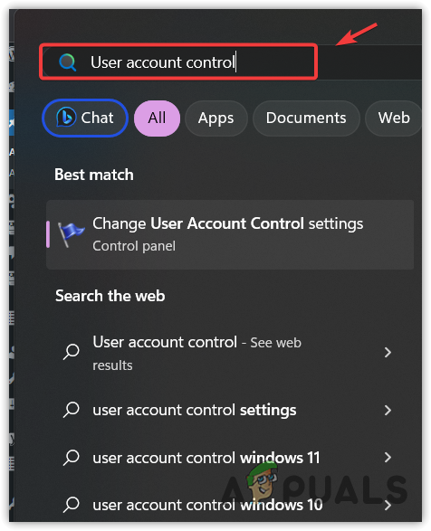 - Click the Start Menu and type User Account Control.