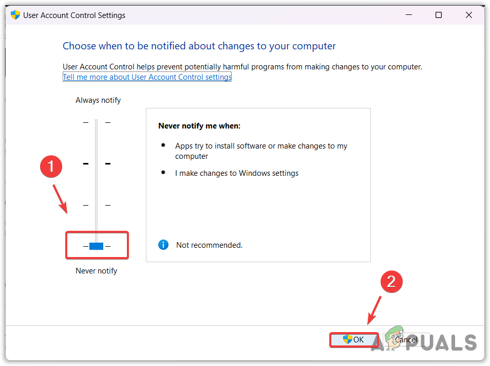 - Here, you will see the slider; move it all the way down and click OK.