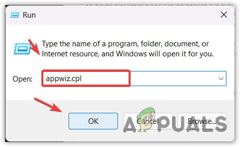 - Type appwiz.cpl in the input box and click OK to navigate into the control panel.