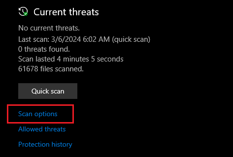- Choose the type of scan by clicking on Scan Options.