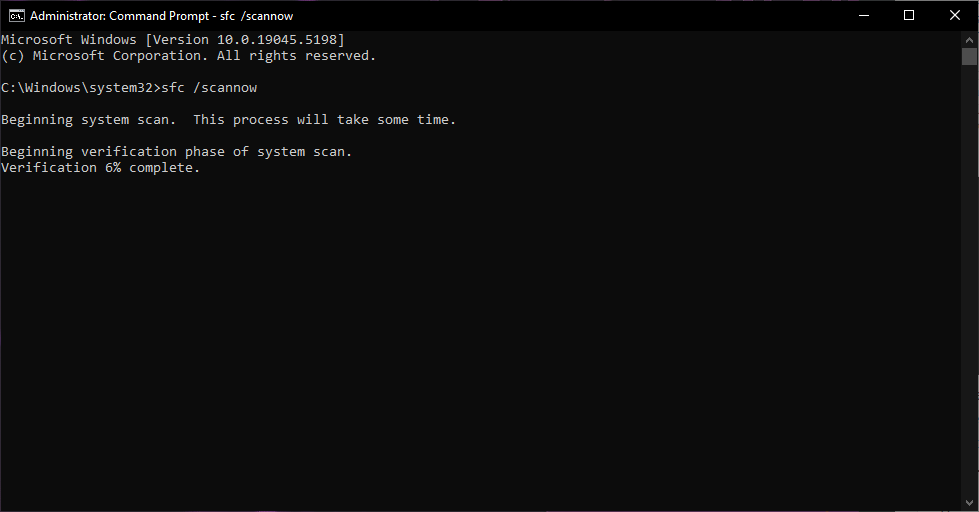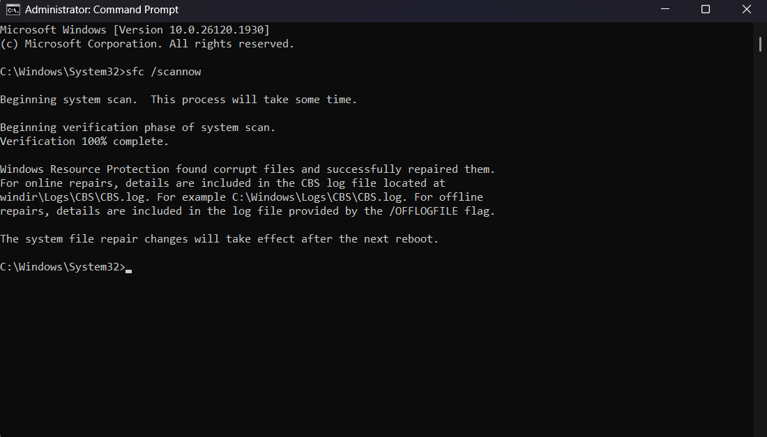 After running CHKDSK, we’ll proceed with SFC to check and repair any corrupted system files: