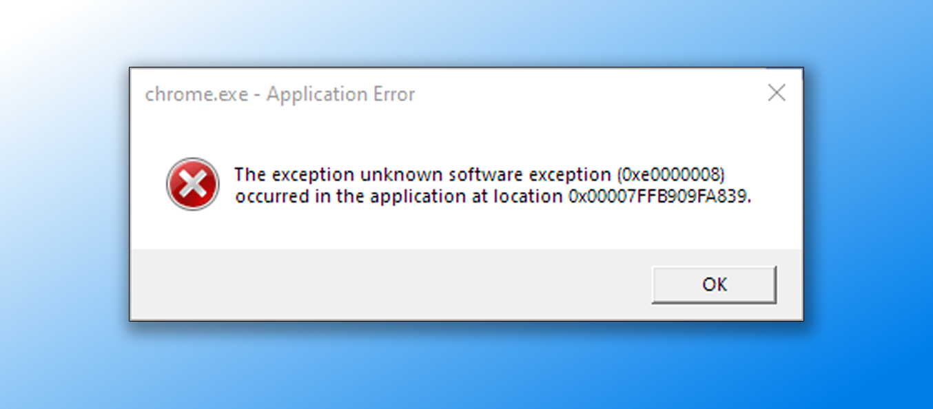 The error message “The exception unknown software exception (0xe0000008)” usually points to issues with system memory, corrupted files, or conflicting software. This error can cause applications like Chrome, Discord, or Teams to crash, leading to unexpected freezes or black screens. It’s often a sign that something in your system is trying to access memory it shouldn’t, or a program is interfering with another process.