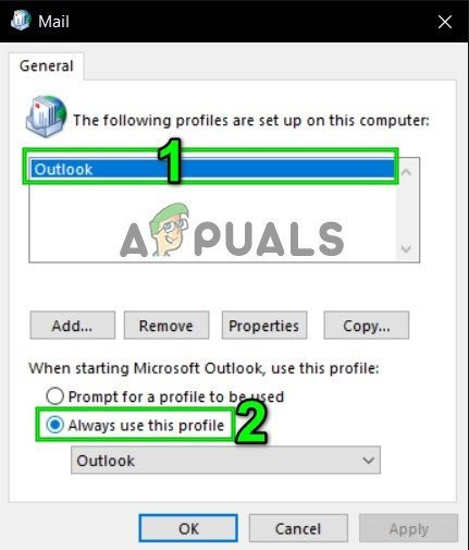 - Now in the Mail, select the newly created profile and select Always use this profile.