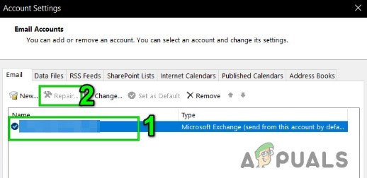Open Outlook Account Settings - Now select the Exchange email account and then click Repair.
