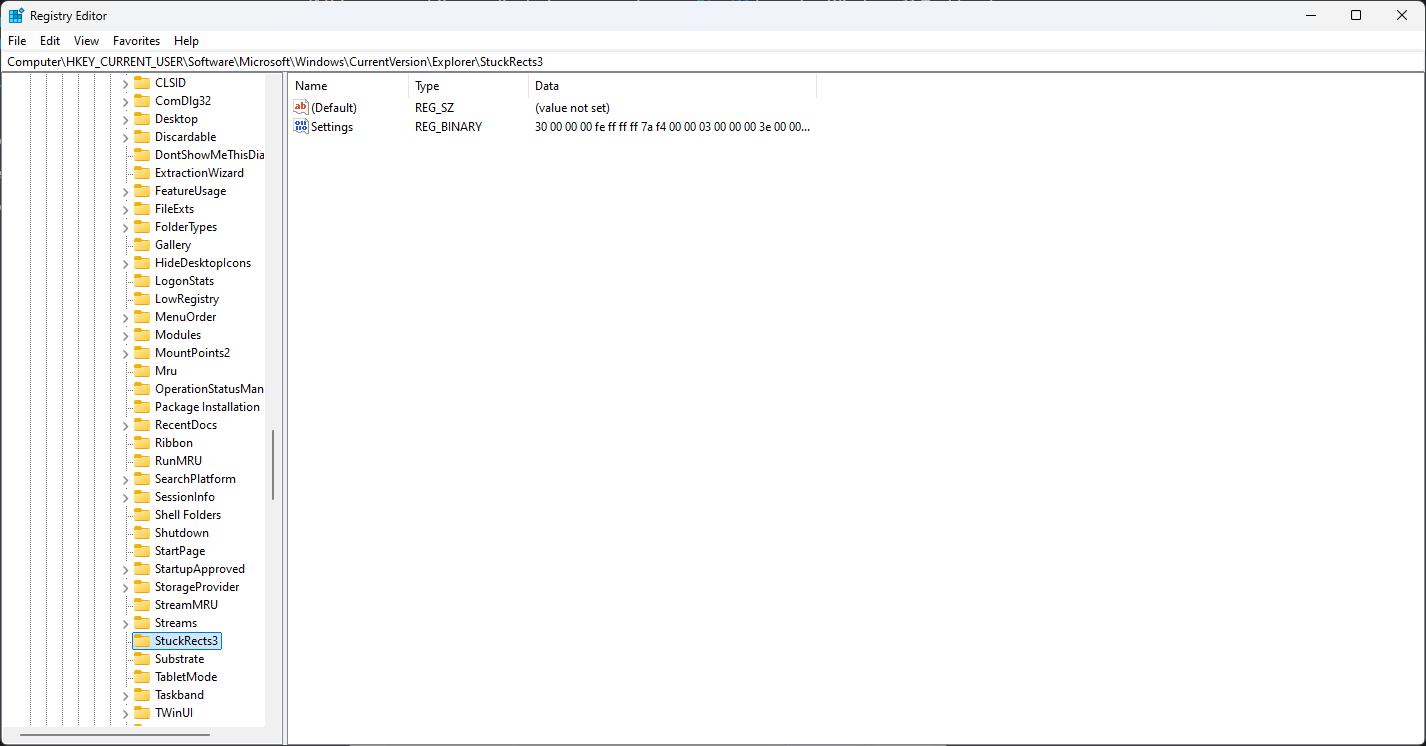HKEY_CURRENT_USER > Software > Microsoft > Windows > CurrentVersion > Explorer > StuckRects3