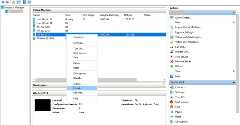Exporting and Importing Virtual Machines in Hyper-V 2019