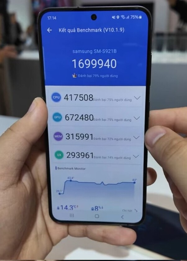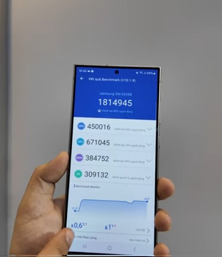 While pre-release hardware results on AnTuTu and Geekbench did indicate that both SoCs are comparable, the real-life testing will reveal the true story. After Unpacked, Vietnamese YouTuber Khôi Ngọng managed to run AnTuTu on both S24 devices to check for differences where he observed a considerable performance gap. The S24 Ultra, equipped with 8G3 FG, achieved 1,814,945 points, while the S24 Plus with Exynos 2400 only reached a peak of 1,699,940 points—a gap of over 7%.