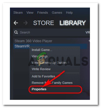 - Search for SteamVR in the Library and then choose Properties from the context menu.