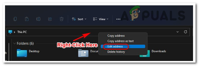 - By right-clicking and choosing “Edit address,” you may copy and paste this address into the address bar on This PC: