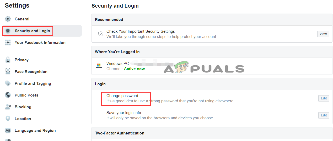 5. Change the Facebook Account Password