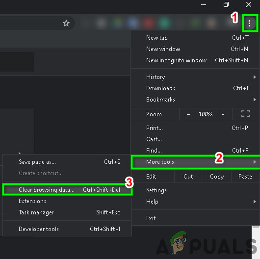 - Select More tools, then choose Clear browsing data.