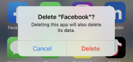 - Tap Delete App to remove the app and its local data, then reinstall Facebook from the App Store.