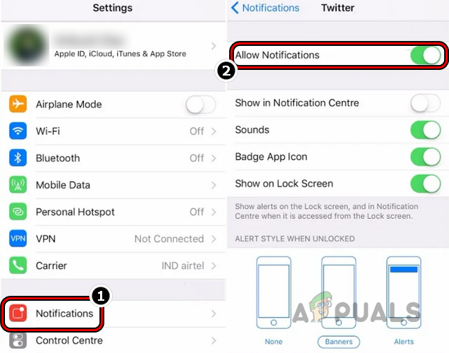 Disable iPhone Notifications - Now disable Notifications and wait for a minute.
