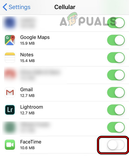 If the cellular data for Facetime is not enabled in your device settings, then that could also cause the problem under discussion when using the cellular data of the device. In such a case, enabling Cellular Data for Facetime in the device settings may clear the issue.
