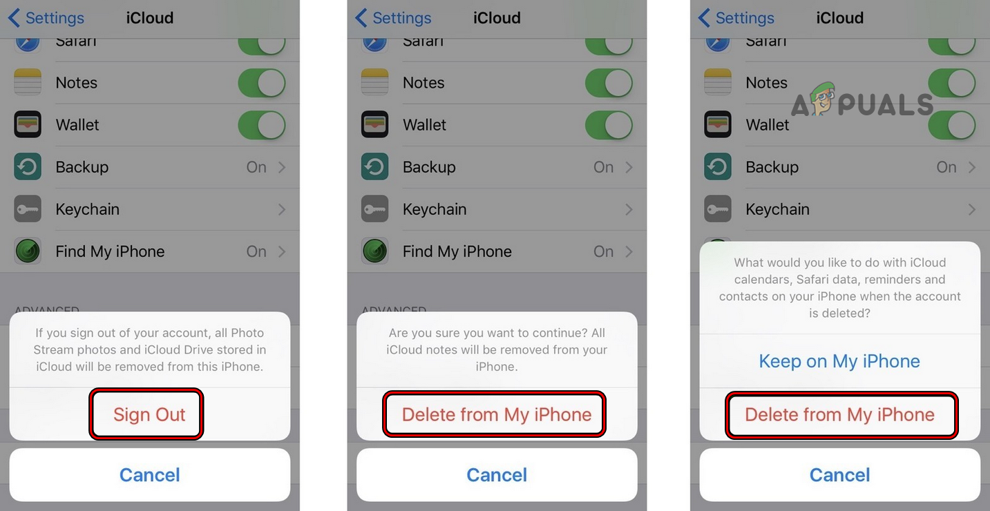 - Now open iCloud and Sign out of iCloud. You may choose to keep or remove the data from the iPhone.