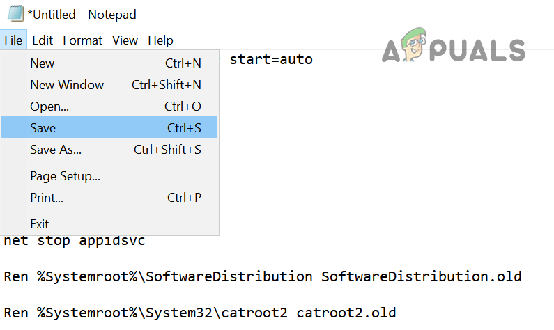 Save the Wufix.bat File on the System’s Desktop - Then close the Notepad window and other applications/documents.