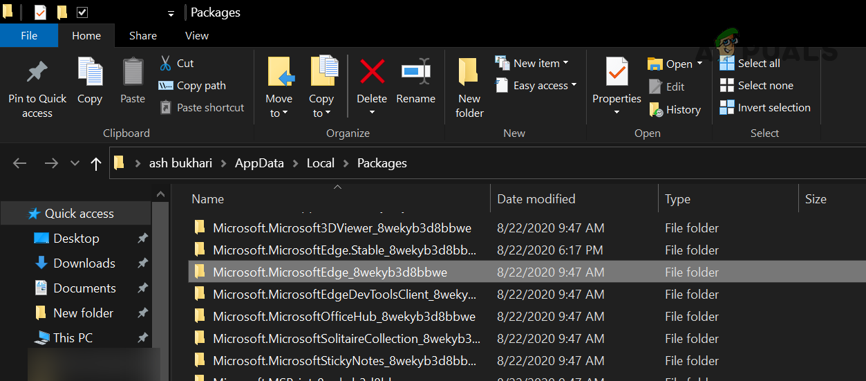 Navigate to the Packages folder in the Local App Data Directory - Now delete the Microsoft.MicrosoftEdge_8wekyb3d8bbwe folder. If you fail to delete the folder, then take its ownership.